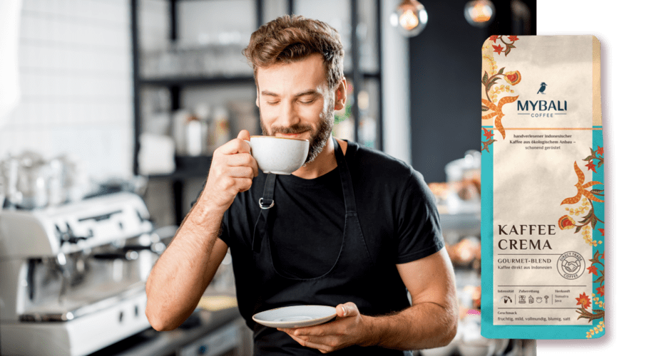 Lebih banyak kopi, harga lebih terjangkau. Pilih antara 5 kg crema MYBALI yang lezat atau espresso. Untuk kantor Anda, bagikan nuansa Bali dengan rekan kerja. Kopi yang nikmat = suasana yang menyenangkan di kantor.