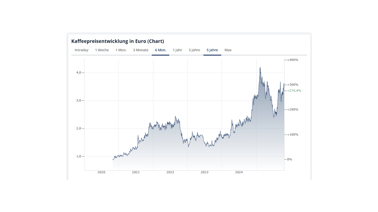 Der Rohstoffmarkt für Spezialitätenkaffee beweist die Stärke von Rohstoffen: Der Preis für Kaffee-Grünbohnen verzeichnete in den letzten fünf Jahren eine Wertsteigerung von über 300%. Wir partizipieren an diesem Wachstum durch den physischen Ankauf realer Assets. Unsere Rohstoffe – nicht nur Papiere – werden sicher und strategisch diversifiziert gelagert: in Jakarta (Nähe zur Quelle), in Hamburg (europäischer Haupthafen) und bei München (zentraleuropäisches Logistik-Hub). Diese physische Präsenz garantiert höchste Sicherheit und maximale Kontrolle über unsere Investitionen.