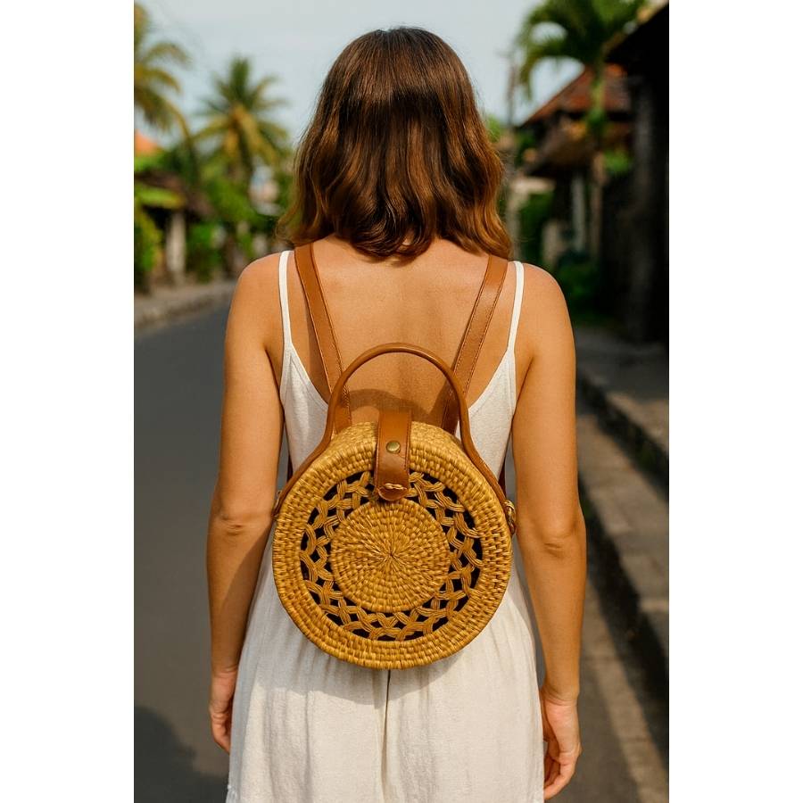 Unser MATAHARI (indonesisch für „Sonne“) ist mehr als ein Rucksack – er ist ein Symbol für Leichtigkeit, Lebensfreude und die goldenen Strahlen eines balinesischen Sonnenuntergangs. In traditioneller Handarbeit aus robustem Ata-Gras gefertigt, beeindruckt er mit seinem aufwendig geflochtenen Sonnenmuster und dem hochwertigen Echtlederriemen.