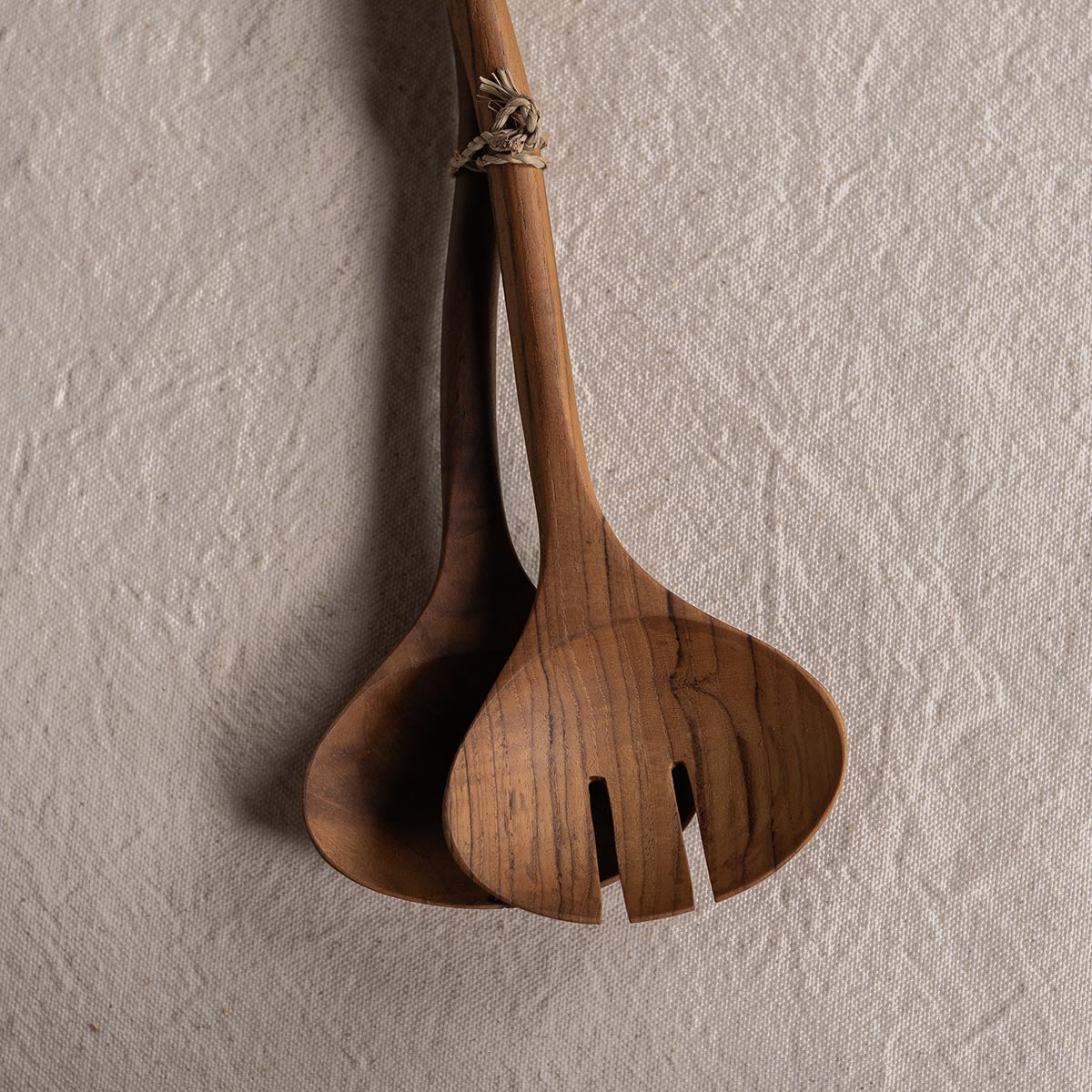 ✔️ Natürliche Eleganz: Das Salatbesteck aus Teakholz bringt eine warme, organische Note auf den Esstisch.