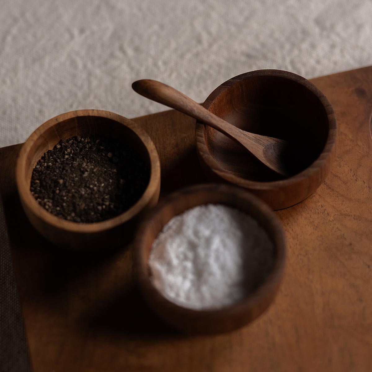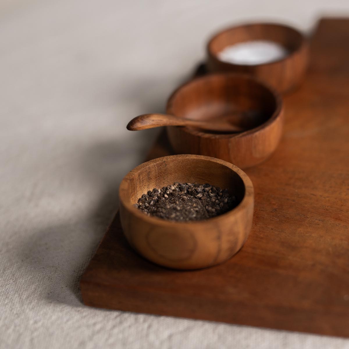 ✔️ Vielseitige Nutzung: Das Set besteht aus drei kleinen Schalen, einem Holzlöffel und einem passenden Teakholzbrett – ideal für Gewürze, Dips oder Beilagen.