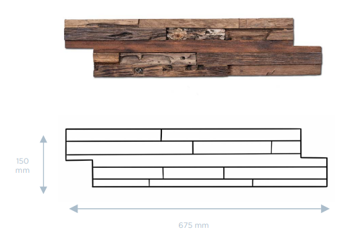 Durch die Kombination von ursprünglicher Patina und handwerklicher Präzision entsteht ein Wandpaneel, das rustikale Wärme mit moderner Raffinesse verbindet. Die verschiedenen Farbtöne – von warmen Honignuancen bis zu dunkleren, gealterten Strukturen – verleihen jeder Wand ein lebendiges und zugleich harmonisches Gesamtbild