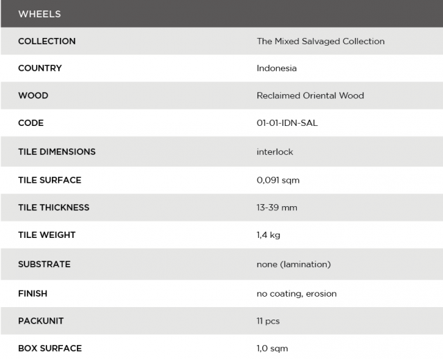 Das Wandpaneel Wheels Mixed Salvaged von Wonderwall Studios bringt natürliche Schönheit und nachhaltiges Design in jeden Raum. Gefertigt aus wiederverwertetem Hartholz, das aus traditionellen Bauwerken stammt, trägt jedes Stück die Spuren der Zeit in sich. Wind, Wetter und natürliche Erosion haben die Oberfläche geprägt und dem Material einen einzigartigen Charakter verliehen.